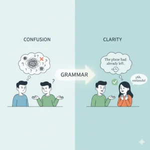 La gramática, en su esencia, existe para que tú puedas decir lo que quieres decir de la manera que quieras. Sí, son reglas que hay que seguir, pero están ahí para que puedas decir las cosas con precisión. Mira este ejemplo: “When I arrived at the airport, the aeroplane had already left.” No usé ninguna palabra como before (antes) o after (después), pero está clara la idea de que yo perdí mi vuelo. Y esta facilidad la logramos con la gramática. No tenemos que explicar más cosas, no tenemos que recibir una pregunta adicional de la otra persona. Con el simple hecho de que usamos past perfect y past simple, todo el mensaje está claro. Entonces decir que la gramática no importa, simplemente no está bien.